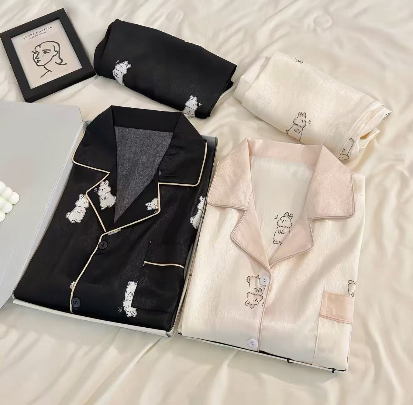 情侣睡衣奶兔男女短袖长袖长裤夏季凉感冰丝宽松情侣家居服两件套